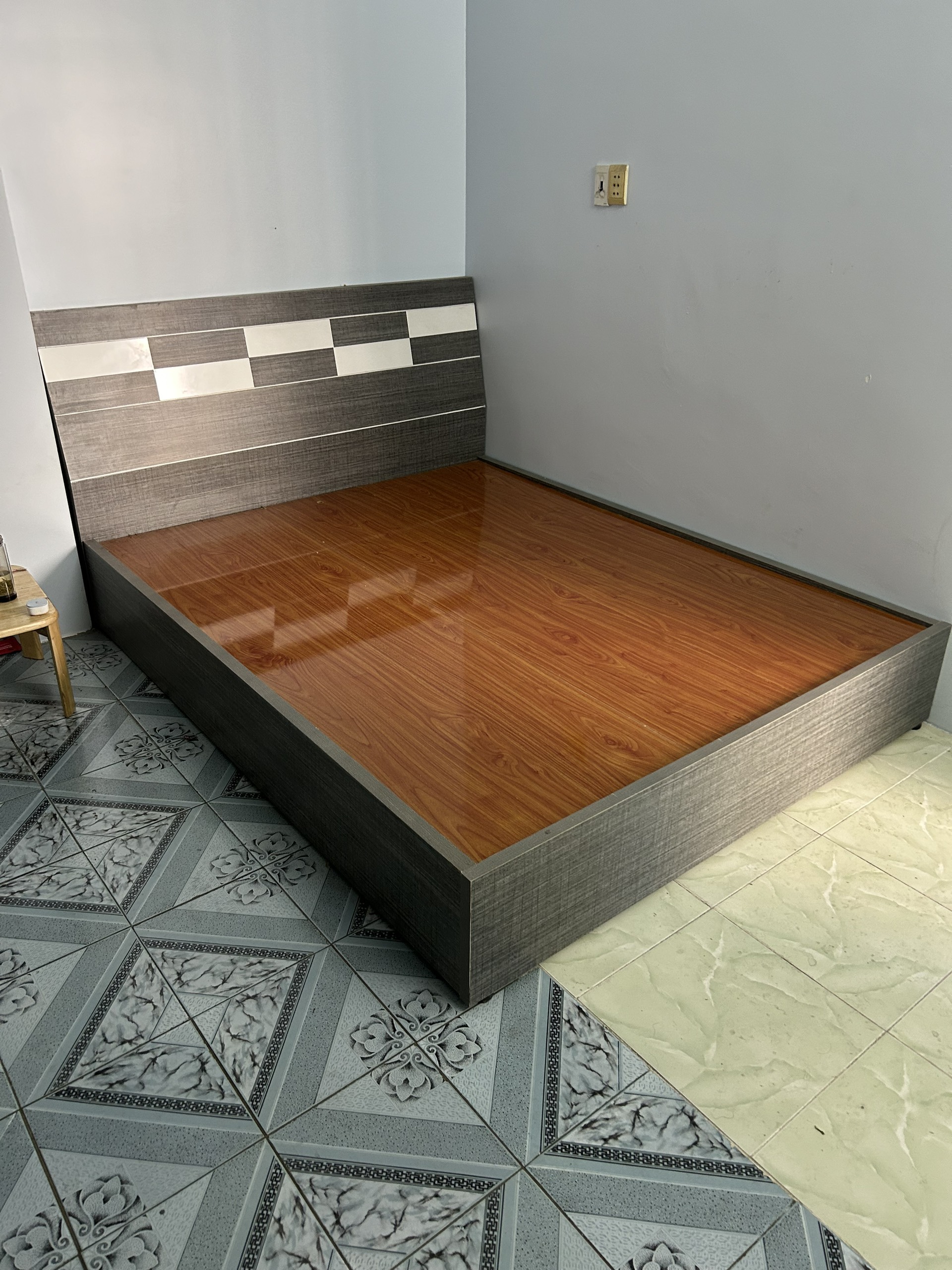 KT: 1.8×2.0×0.35(m) Chất liệu: Gỗ Màu sắc: Xám Tình trạng: Mới 95%